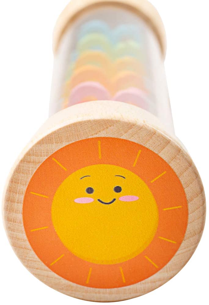 This adorable wooden Rainmaker recreates the soft sound of rainfall. As you turn the instrument, the colourful beads will cascade through the tube, creating fascinating sounds and visual effects.