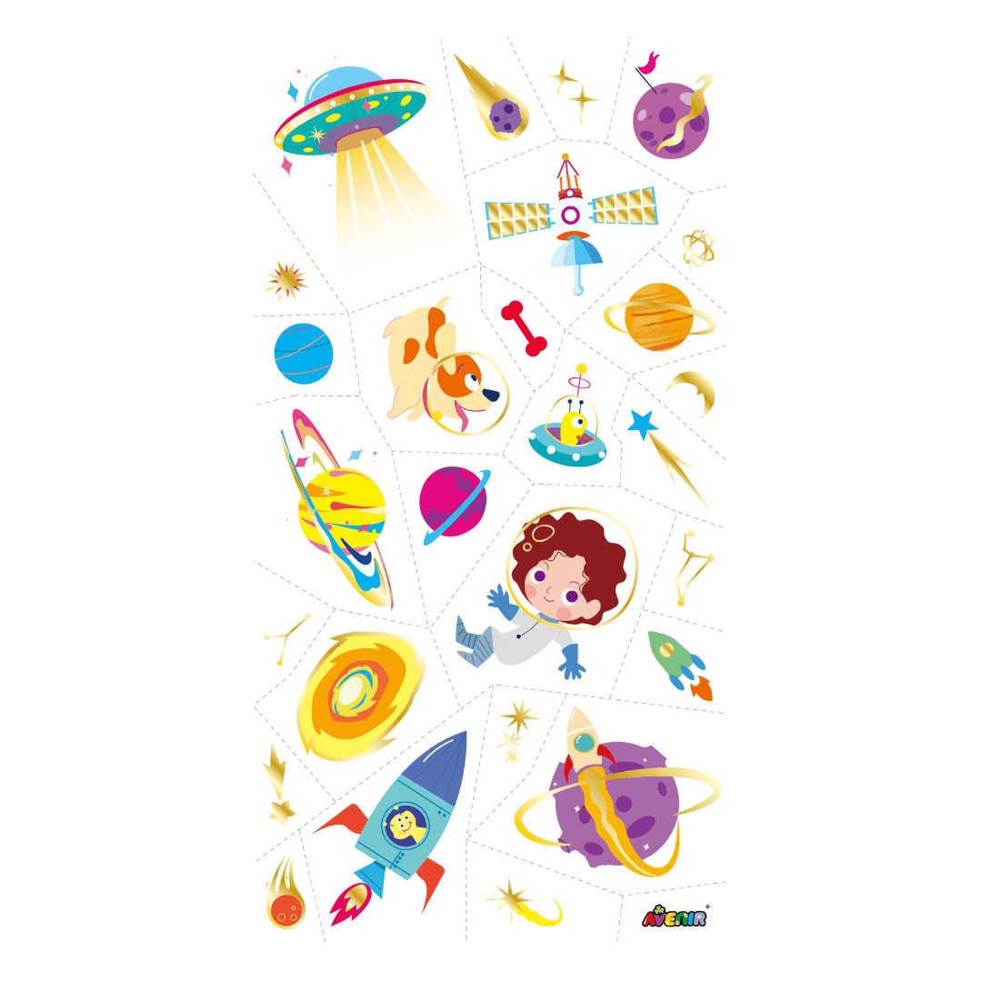 This great pack of silvery tattoos features plenty of space designs for every space lover.