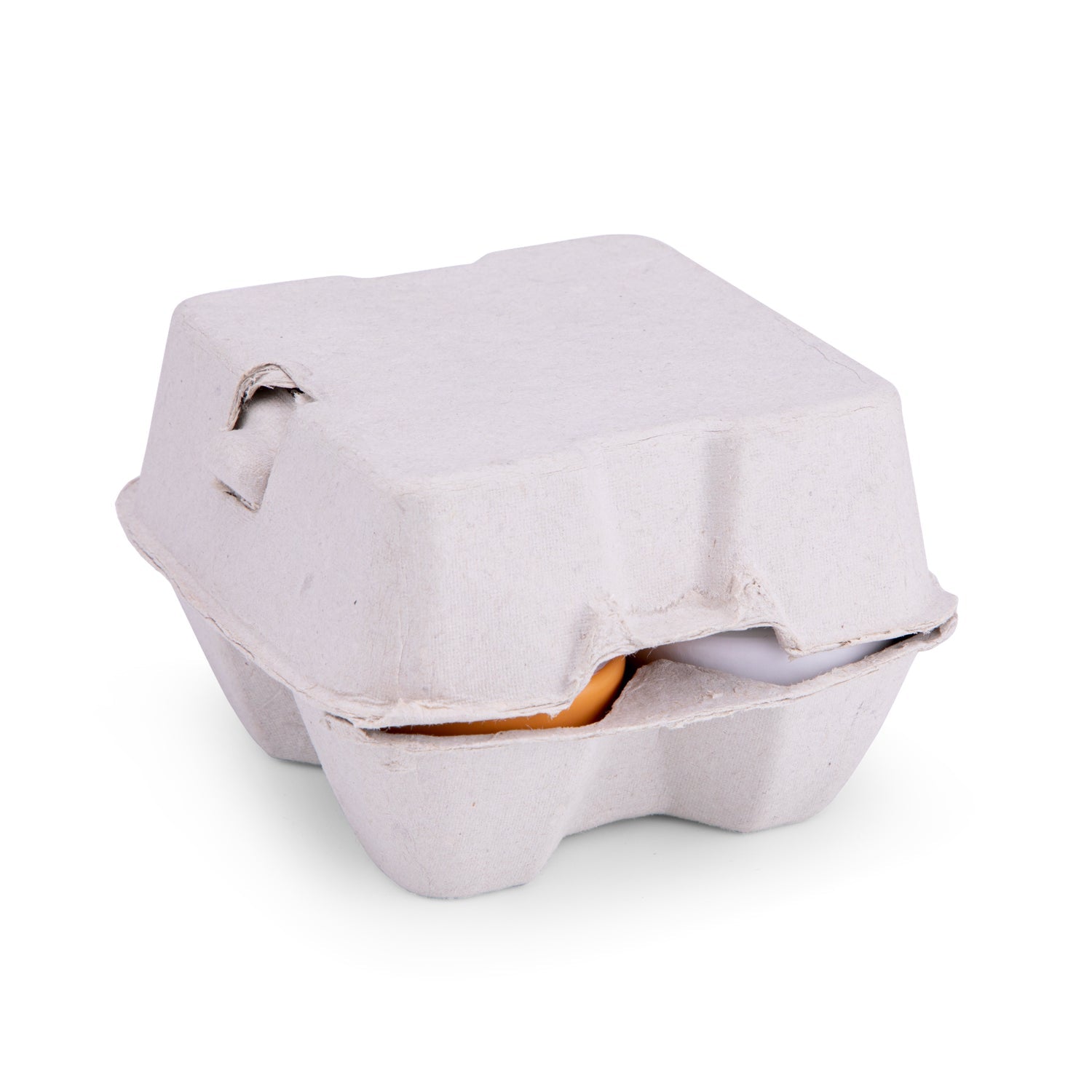 Four toy eggs made of wood in a realistic egg carton. Eggs can be “cracked open” with the velcro egg yolk. Perfect for the budding chef.